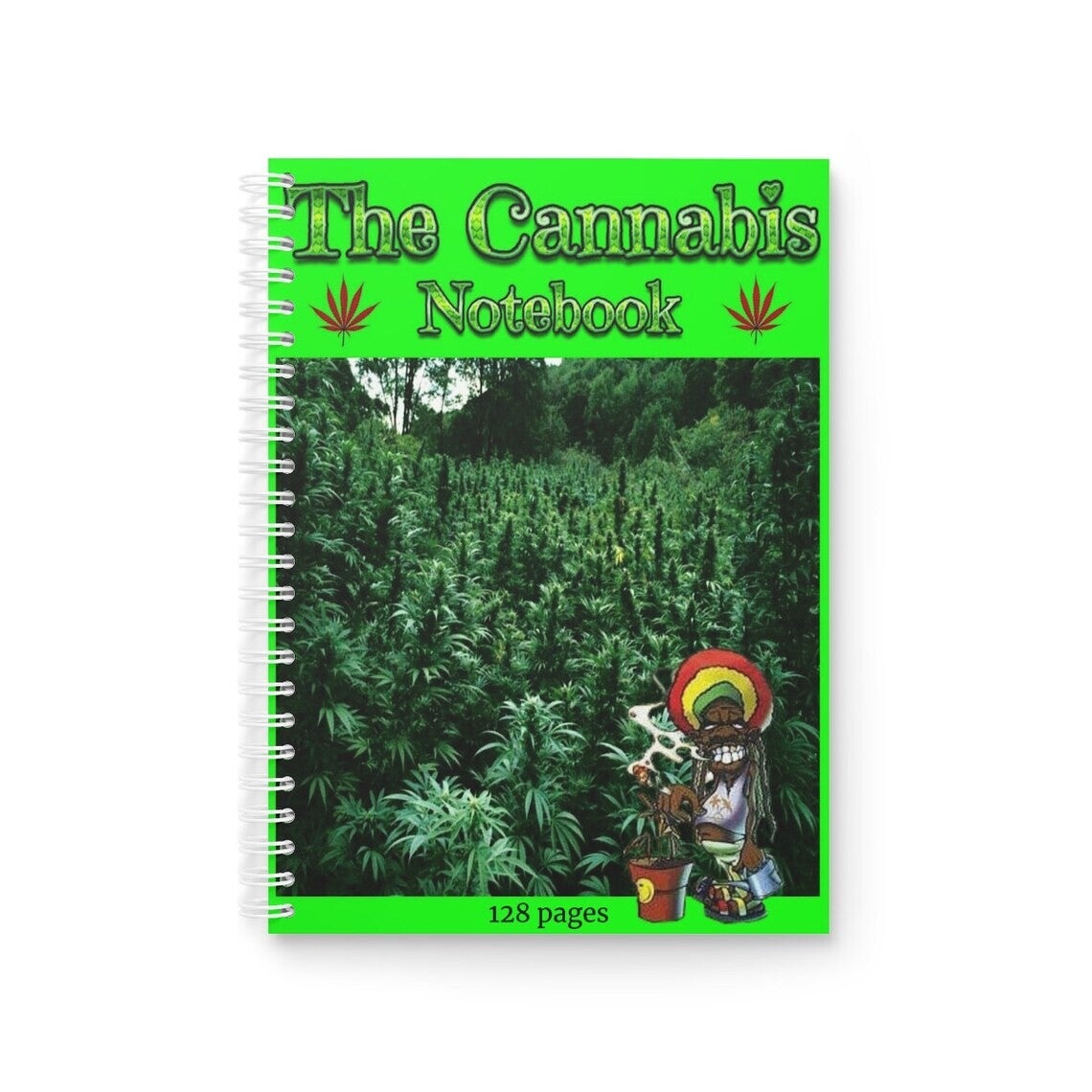 "The Cannabis Notebook", these wide-ruled spiral notebooks are 128 single lined pages, they are an excellent choice for journaling or taking notes in school. The semi-gloss laminated covers make them fashionable yet functional. Add these wide-ruled spiral notebooks to your store today.\n.: Front and back cover print\n.: 128 ruled line pages (64 sheets)\n.: Semi-glossy laminated cover